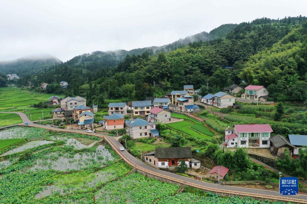 這是8月2日在貴州省岑鞏縣客樓鎮下寨村拍攝的新農村景色(無(wú)人機照片)。