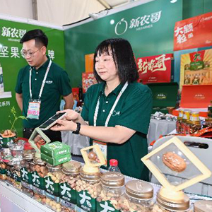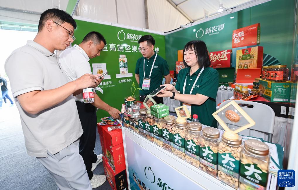 這是8月3日拍攝的2023中國國際堅果大會(huì )的展銷(xiāo)會(huì )現場(chǎng)。