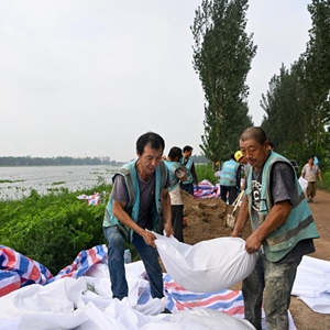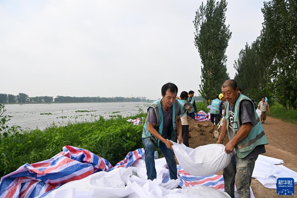 當日,來(lái)自中建、中交等多個(gè)單位的工人和靜海區當地村民共千余人忙碌在大清河天津市靜海段南北兩岸,持續進(jìn)行兩岸堤壩加高加固工作,以應對大清河河道內不斷增長(cháng)的上游來(lái)水。