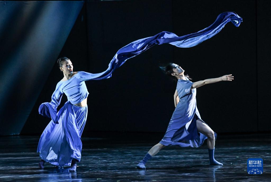 8月3日晚,北京舞蹈學(xué)院青年舞團演員在新疆藝術(shù)劇院劇場(chǎng)演出。