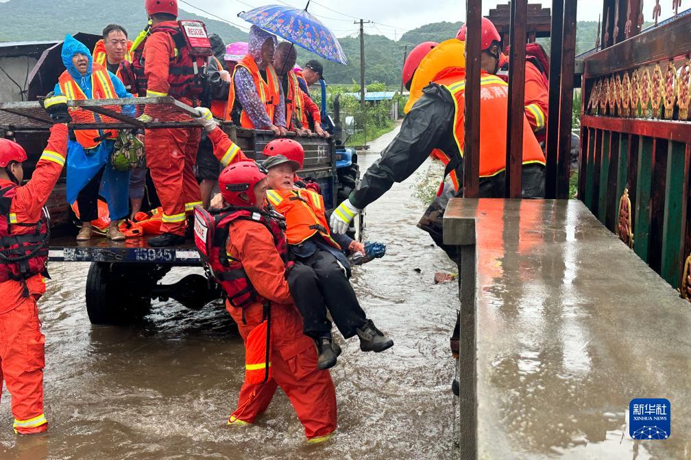 8月4日,在尚志市一面坡鎮萬(wàn)山村,哈爾濱市森林消防支隊的消防員正在解救被困村民。