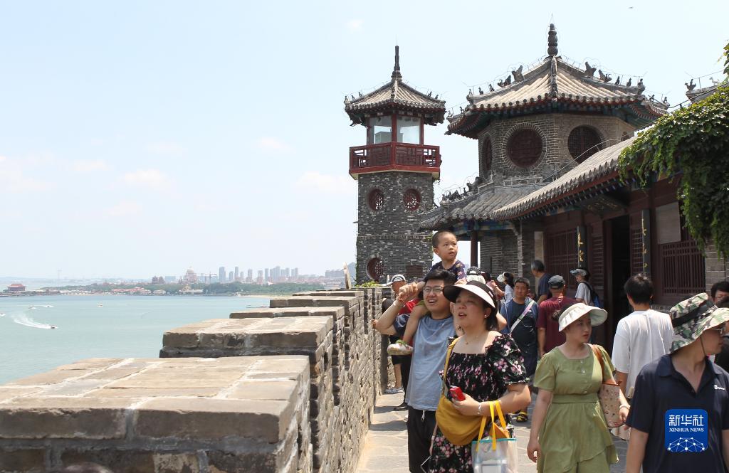 暑期,眾多游客來(lái)到山東蓬萊海濱旅游消暑。
