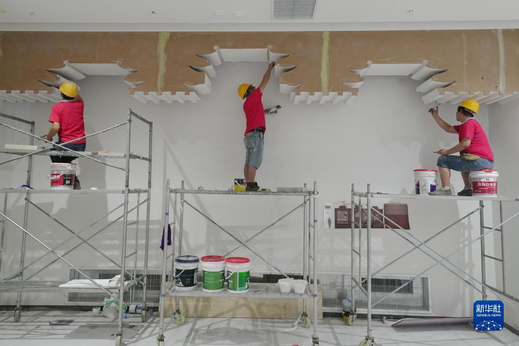 8月4日,工人在山海關(guān)中國長(cháng)城博物館進(jìn)行內部裝修施工。