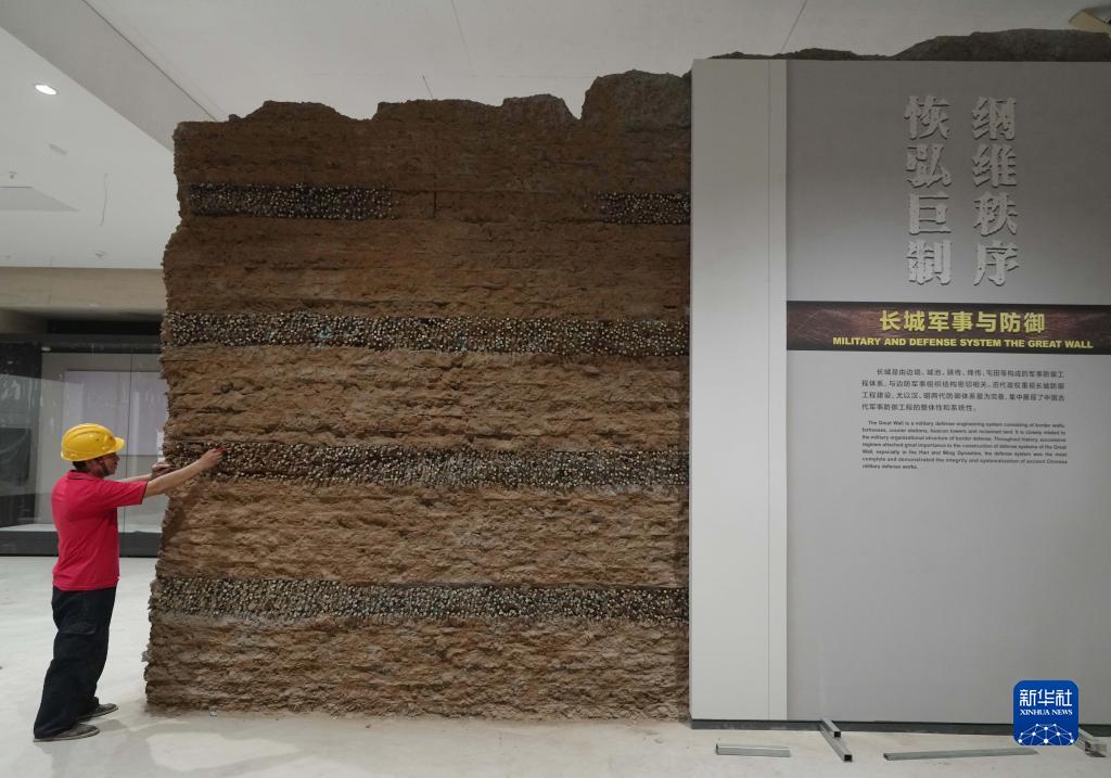 8月4日,工人在山海關(guān)中國長(cháng)城博物館進(jìn)行內部裝修施工。
