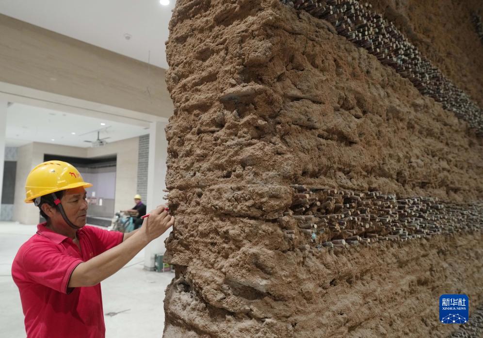 8月4日,工人在山海關(guān)中國長(cháng)城博物館進(jìn)行內部裝修施工。