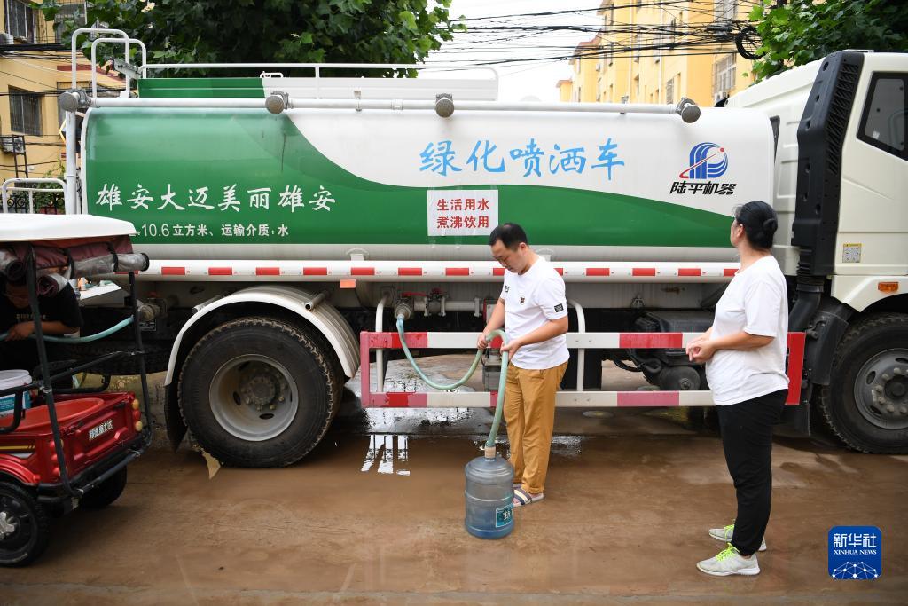 為緩解災后城鎮居民用水難題,目前,河北省涿州市已完成兩個(gè)臨時(shí)制水供水站點(diǎn)建設,站點(diǎn)內制水、檢測、調試、出水工作已完成。同時(shí),涿州市利用各地市支援的供水罐裝車(chē)輛,為嚴重缺水地區供給生活用水。
