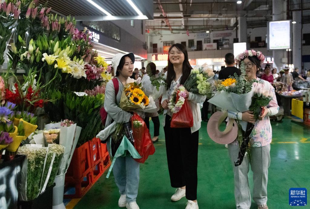 幾名外地游客在昆明斗南花卉市場(chǎng)內購買(mǎi)鮮花(7月13日攝)。新華社記者 陳欣波 攝