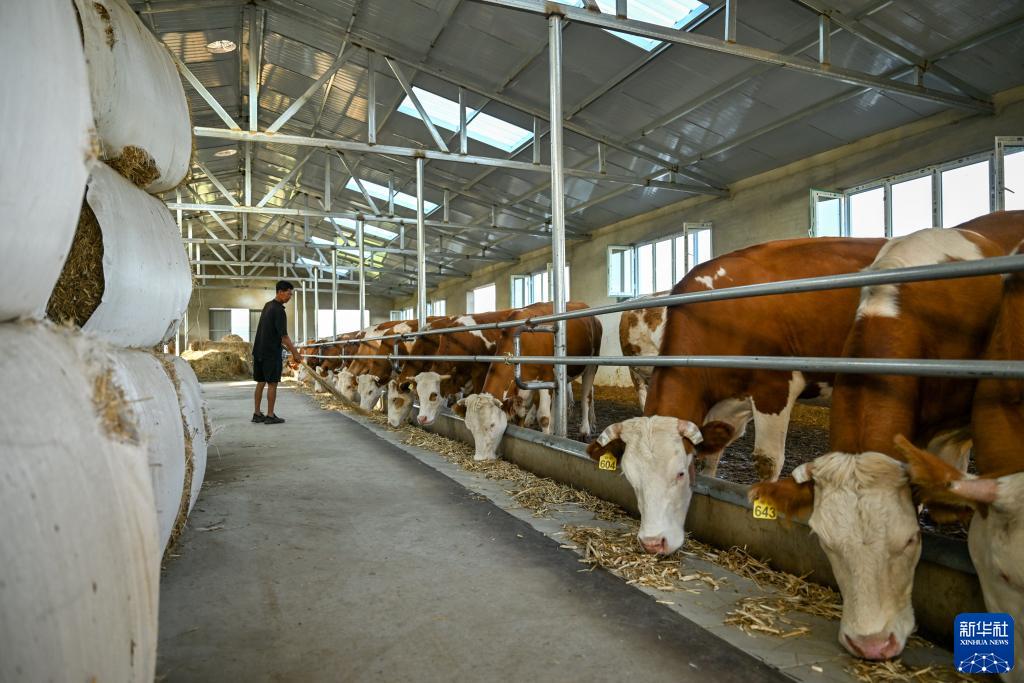8月3日,在扎魯特旗巨日合鎮,養殖戶(hù)李和在喂牛,他與合作社簽訂了托管代養協(xié)議,托管代養了10頭基礎母牛。