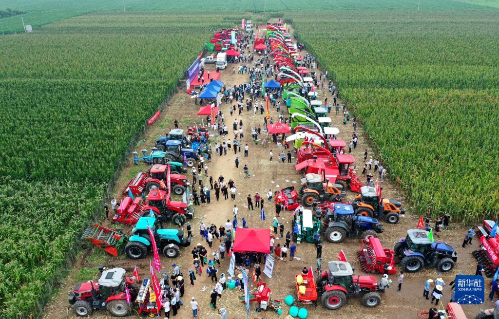 8月4日拍攝的“農機地頭展——2023年河北農機新機具新技術(shù)推廣演示會(huì )”現場(chǎng)(無(wú)人機照片)。