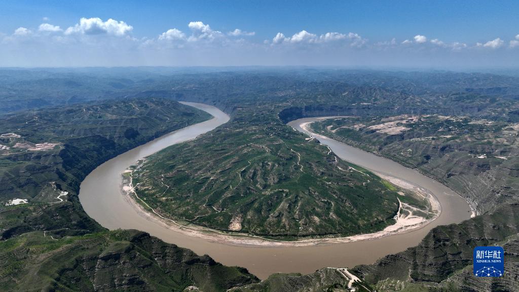 在山西省石樓縣辛關(guān)鎮拍攝的黃河奇灣(8月3日攝,無(wú)人機照片)。