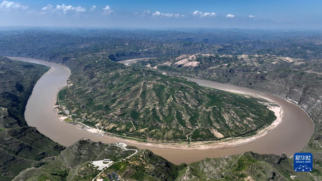 在山西省石樓縣辛關(guān)鎮拍攝的黃河奇灣(8月3日攝,無(wú)人機照片)。
