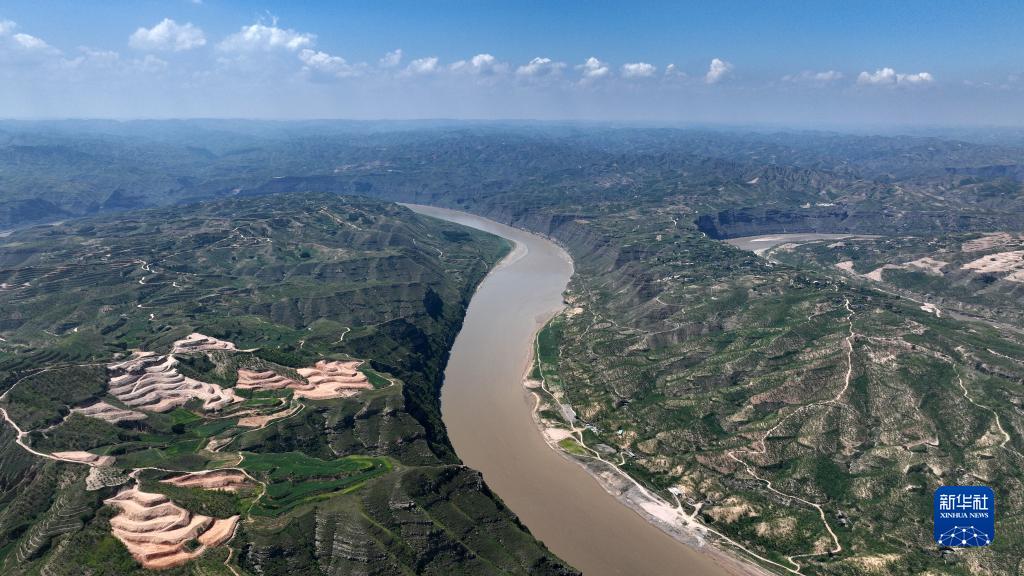 在山西省石樓縣辛關(guān)鎮拍攝的黃河奇灣(8月3日攝,無(wú)人機照片)。