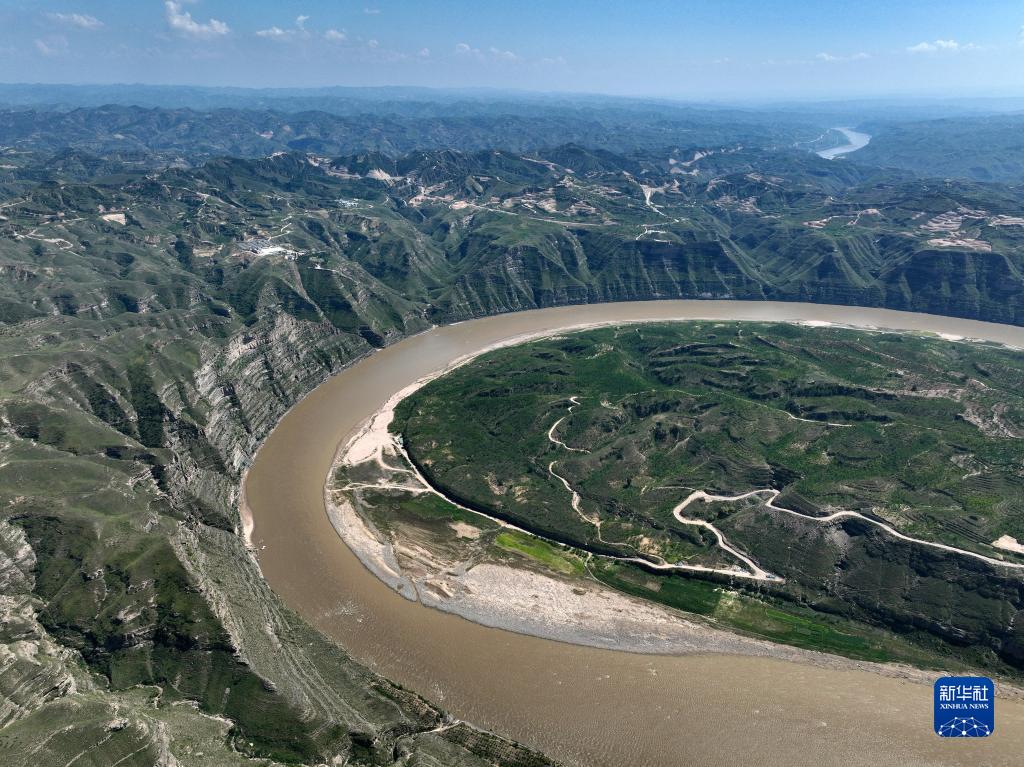 在山西省石樓縣辛關(guān)鎮拍攝的黃河奇灣(8月3日攝,無(wú)人機照片)。