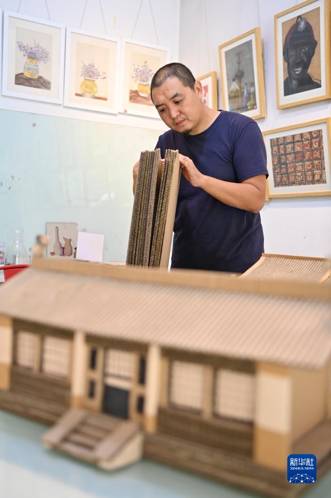 王帥棟在位于山西省太原市萬(wàn)柏林區的工作室內選紙(8月1日攝)。