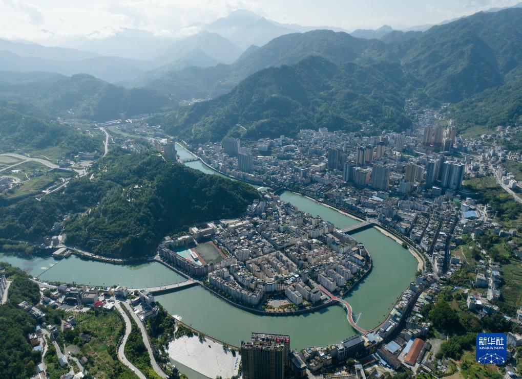 俯瞰嵐皋縣縣城(8月4日攝,無(wú)人機照片)。