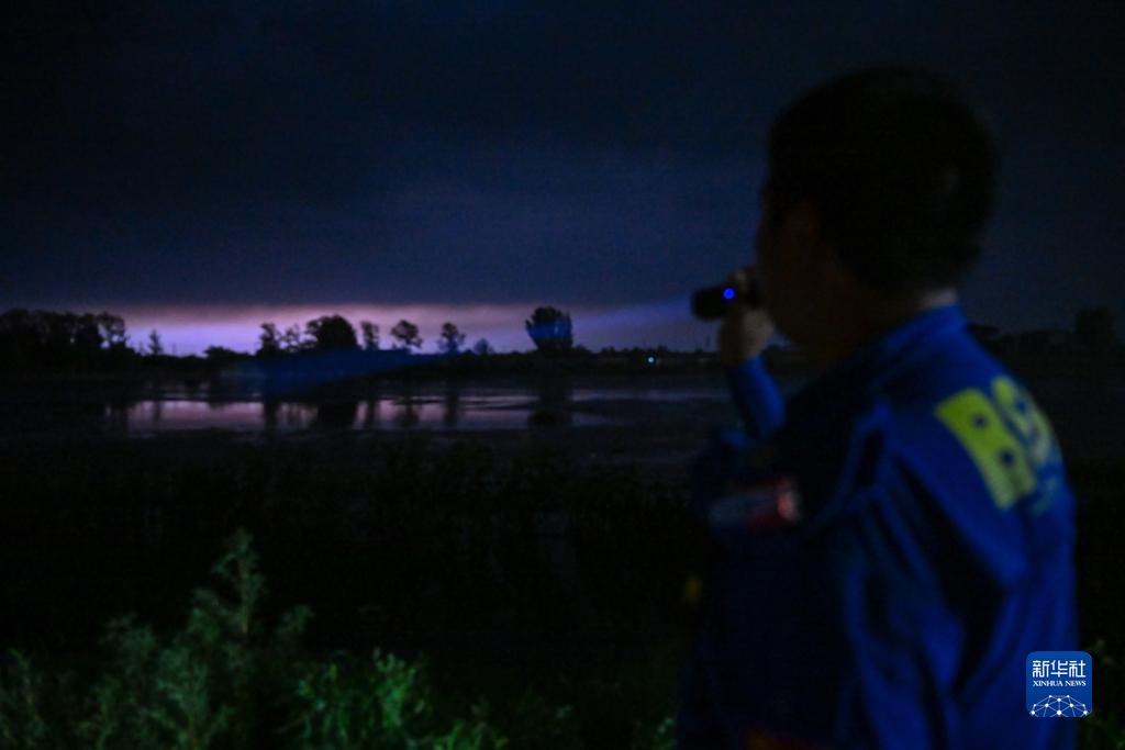 新華全媒+丨夜間直擊大清河天津靜海段抗洪一線(xiàn)