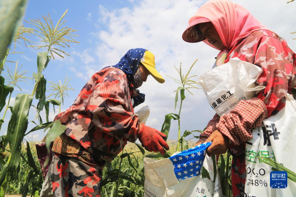 8月5日,甘肅省定西市安定區魯家溝鎮小岔口村農民在收獲水果玉米。