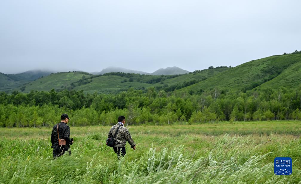 8月4日,兩名動(dòng)植物監測員走在罕山國家級自然保護區內。