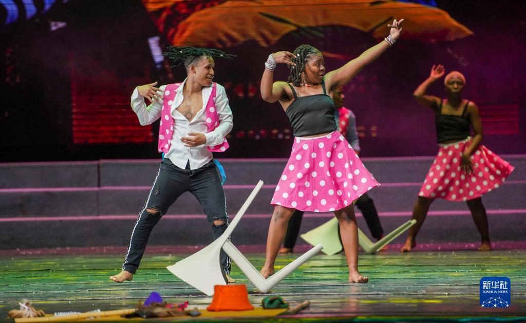 南非埃爾維斯舞蹈藝術(shù)團的演員表演舞劇《烏班圖之魂》(7月25日攝)。