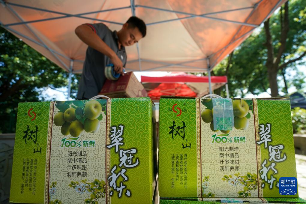 眼下正值江蘇省蘇州市高新區通安鎮樹(shù)山村翠冠梨豐收季。在當地千畝梨園里,一顆顆飽滿(mǎn)圓潤的梨子掛滿(mǎn)枝頭,碩果飄香,農戶(hù)抓緊采摘、銷(xiāo)售,眾多市民游客前來(lái)品嘗、選購。目前樹(shù)山村翠冠梨種植面積達1060畝,種植農戶(hù)370余戶(hù),年產(chǎn)量約1900噸,年總產(chǎn)值約2000萬(wàn)元。