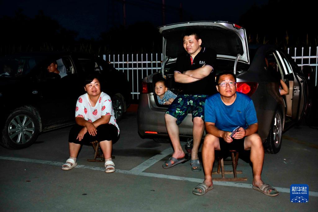 8月6日,平原縣王打卦鎮群眾在戶(hù)外有序避險。