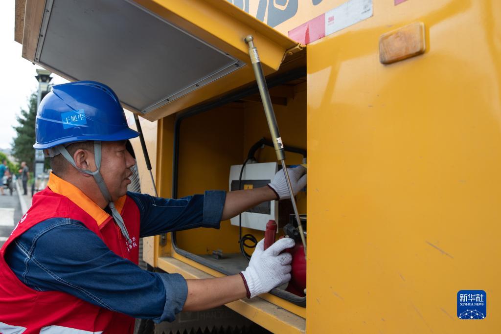 8月6日,工作人員在海林市長(cháng)汀鎮上進(jìn)行臨時(shí)供電。