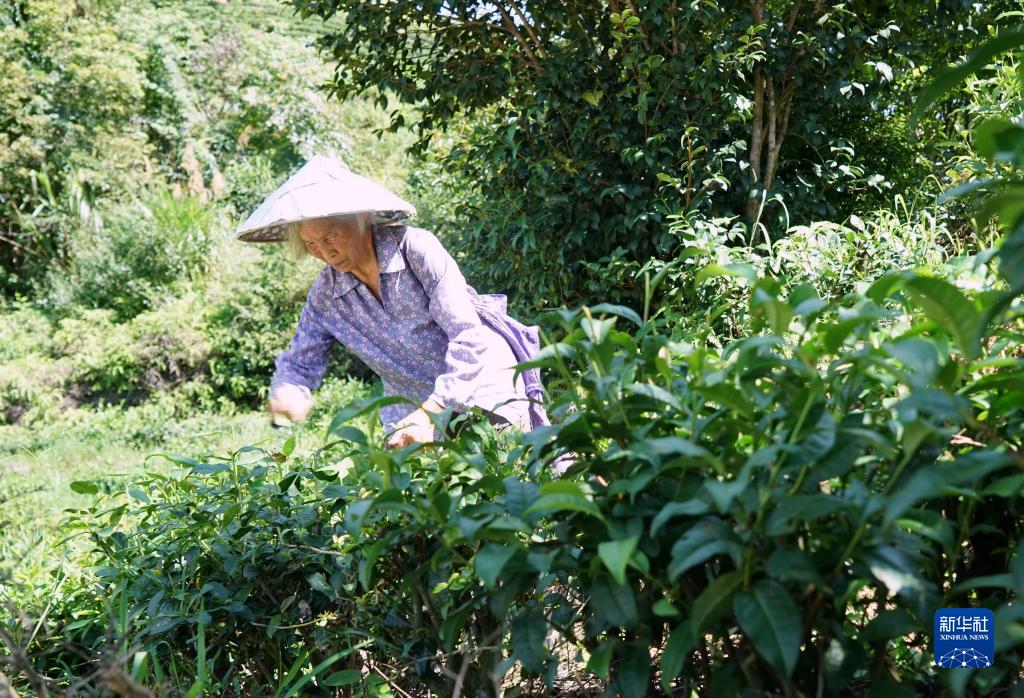 8月5日,壽寧縣下黨鄉下黨村村民在自家茶園里采摘茶葉。
