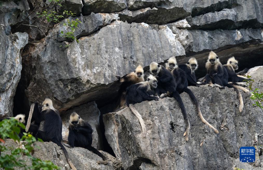 白頭葉猴,頭頂高聳著(zhù)一撮白毛,是我國特有的國家一級重點(diǎn)保護野生動(dòng)物,種群數量稀少,主要分布在廣西崇左市左江和明江之間約200平方公里的喀斯特石山地區。白頭葉猴還有個(gè)好聽(tīng)的名字——“石山精靈”。