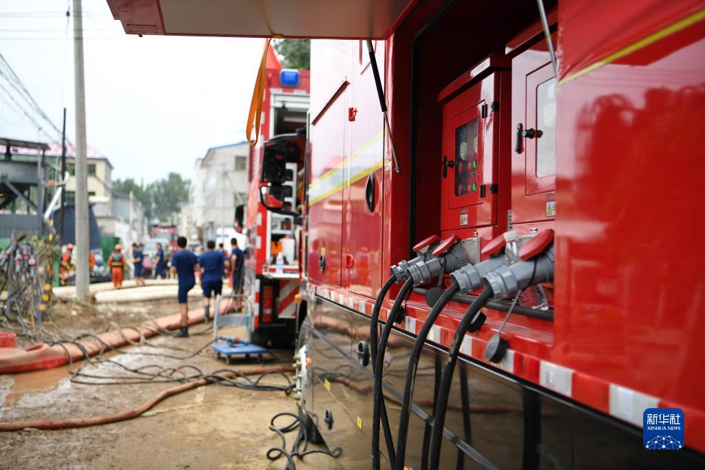 8月6日,在河北省涿州市刁窩鎮東張村,抽水設備在進(jìn)行排澇作業(yè)。