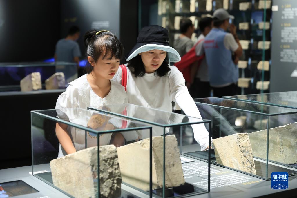8月6日,家長(cháng)陪伴孩子在位于江蘇省南京市的南京城墻博物館參觀(guān)。