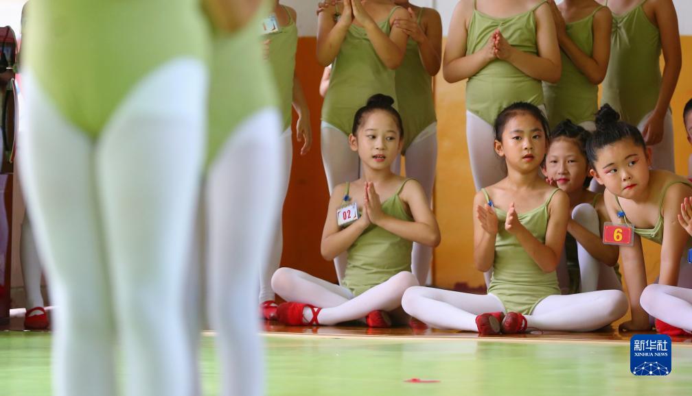 8月6日,在山東省滕州市一家舞蹈培訓機構,孩子們觀(guān)看表演。