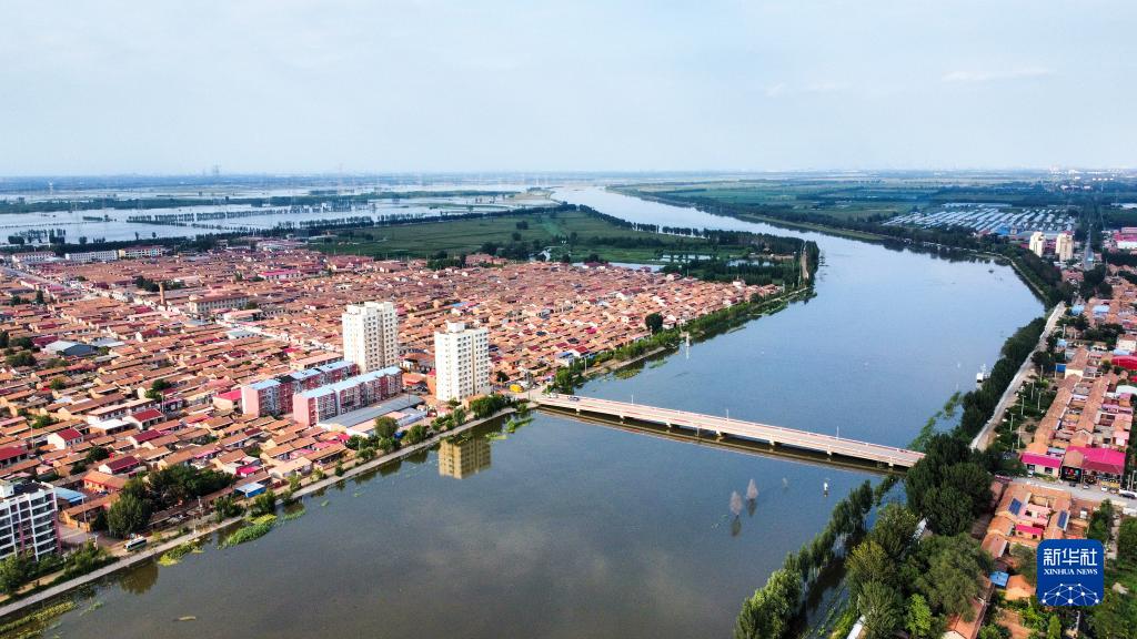 這是8月6日下午無(wú)人機拍攝的在大清河及堤北村莊(無(wú)人機照片)。