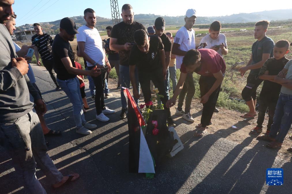 8月6日,人們在約旦河西岸城市杰寧的事發(fā)地點(diǎn)擺放獻花等物品。