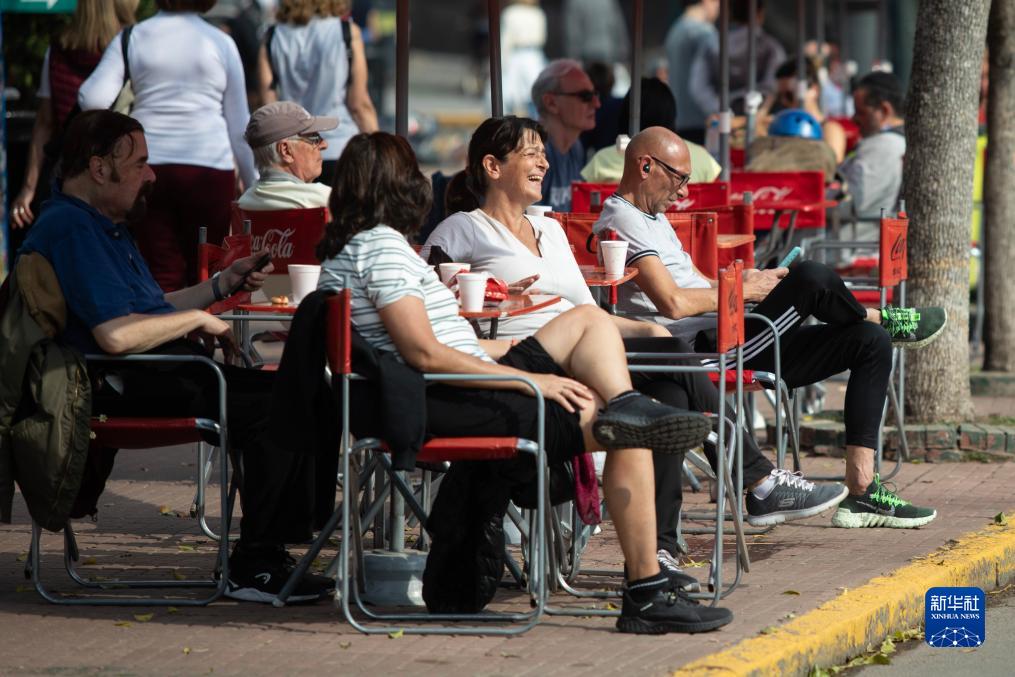 8月6日,人們在阿根廷首都布宜諾斯艾利斯的一處露天餐館用餐。