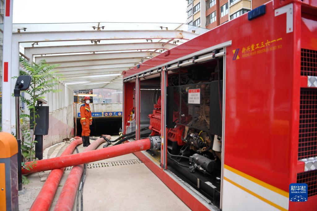 8月7日,邯鄲市消防救援支隊排水設備在河北省涿州市一小區地下車(chē)庫排澇現場(chǎng)作業(yè)。