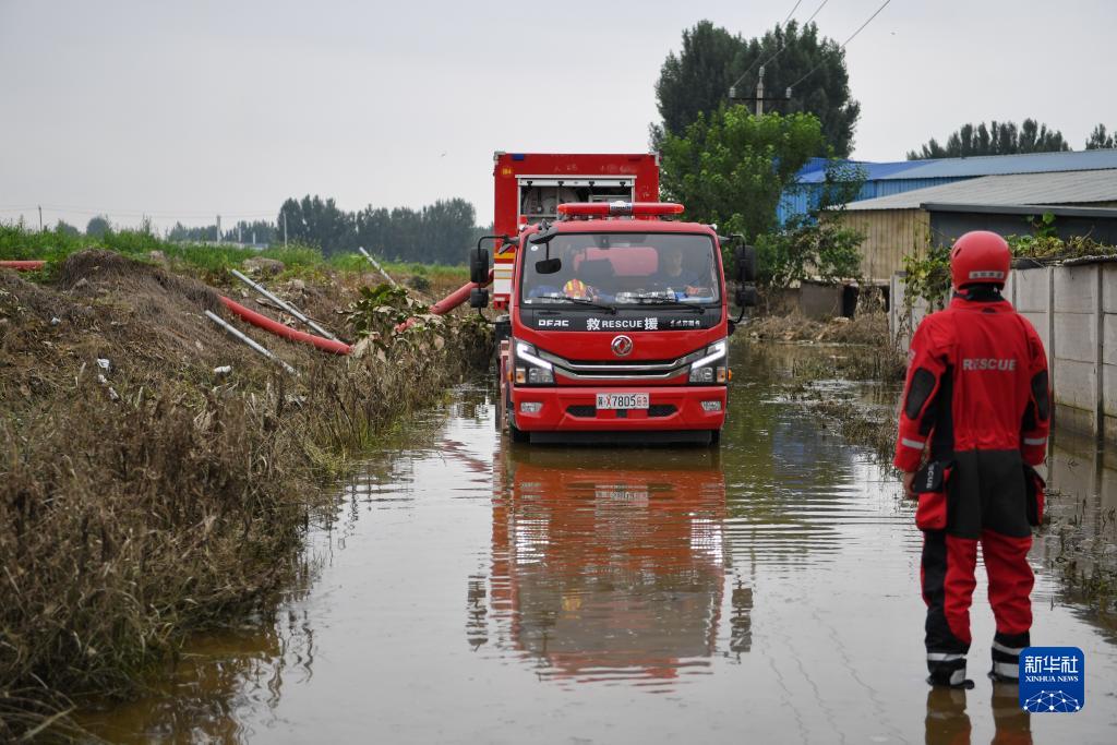 8月7日,保定市消防救援支隊隊員在河北省涿州市林家屯鎮梁家墳村進(jìn)行排澇作業(yè)。