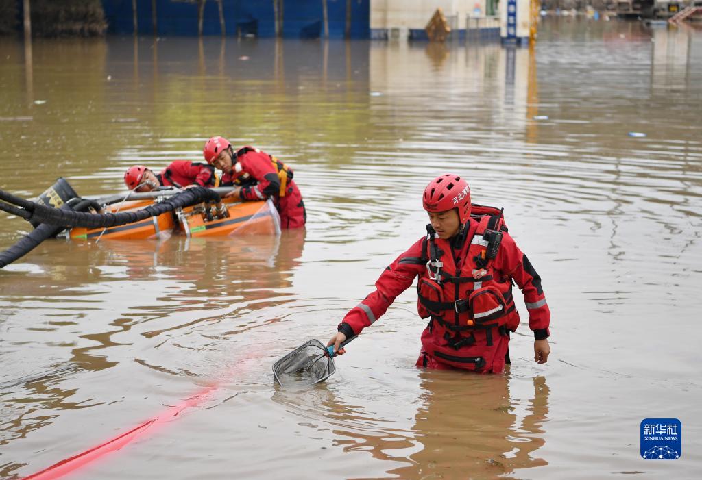 8月7日,唐山市消防救援支隊隊員在河北省涿州市市區內進(jìn)行排澇作業(yè)時(shí)清理水泵附近的雜物。
