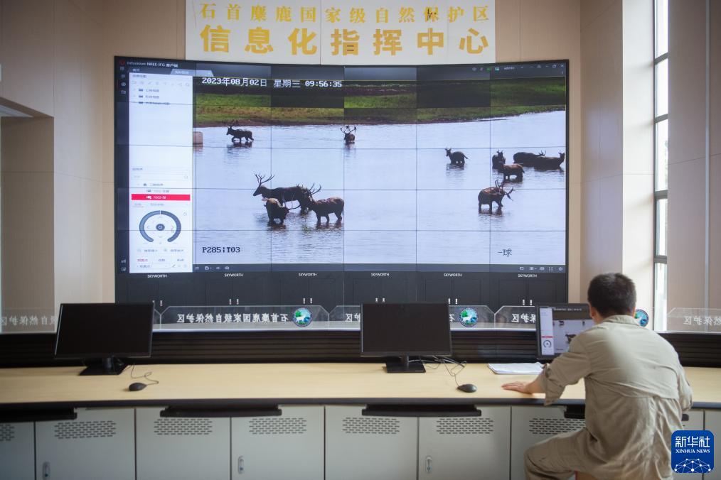 8月2日,在湖北石首麋鹿國家級自然保護區,工程師楊濤在測試信息化平臺系統。近年來(lái),湖北石首麋鹿國家級自然保護區分期分階段開(kāi)展信息化建設。目前,保護區正在開(kāi)展保護區信息化三期建設,以求實(shí)現保護區科學(xué)化、規范化、數字化、智能化管理。