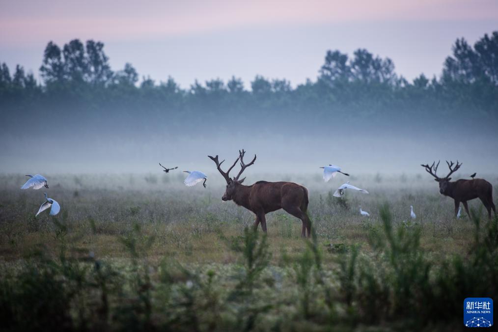 時(shí)至盛夏,位于湖北天鵝洲長(cháng)江故道邊的湖北石首麋鹿國家級自然保護區迎來(lái)了一場(chǎng)夏日的狂歡。
