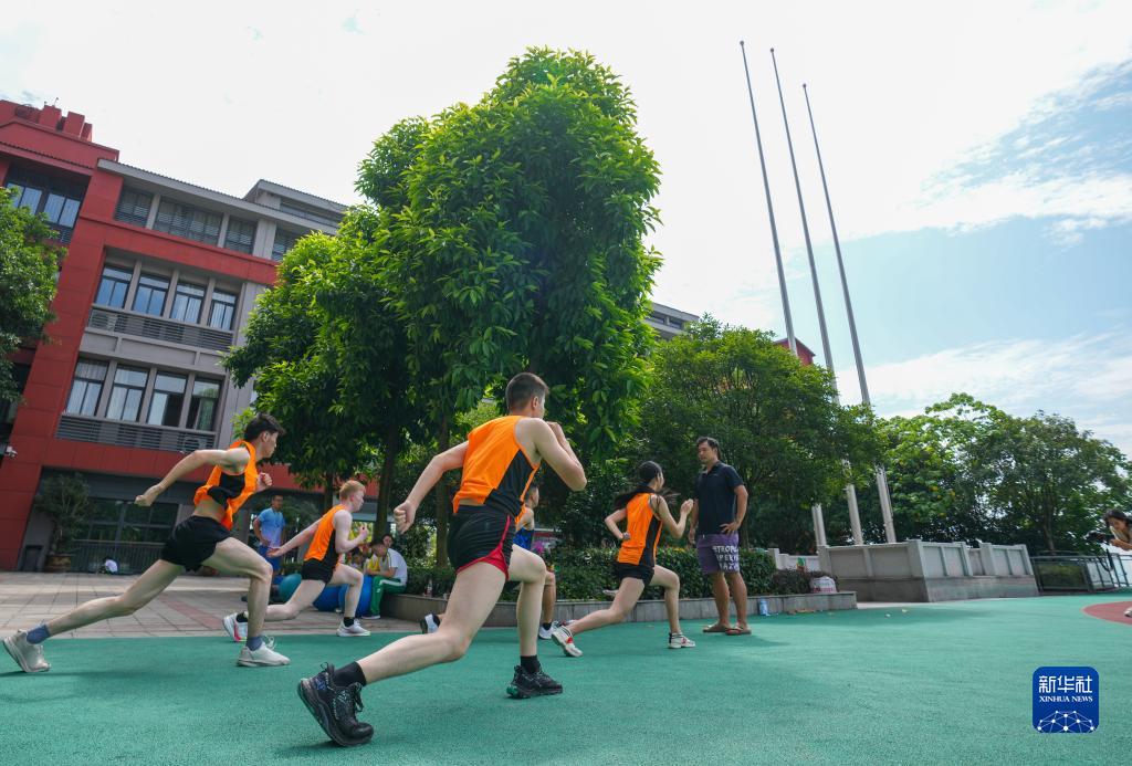 8月4日,重慶市特殊教育中心田徑隊隊員在學(xué)校操場(chǎng)進(jìn)行體能訓練。