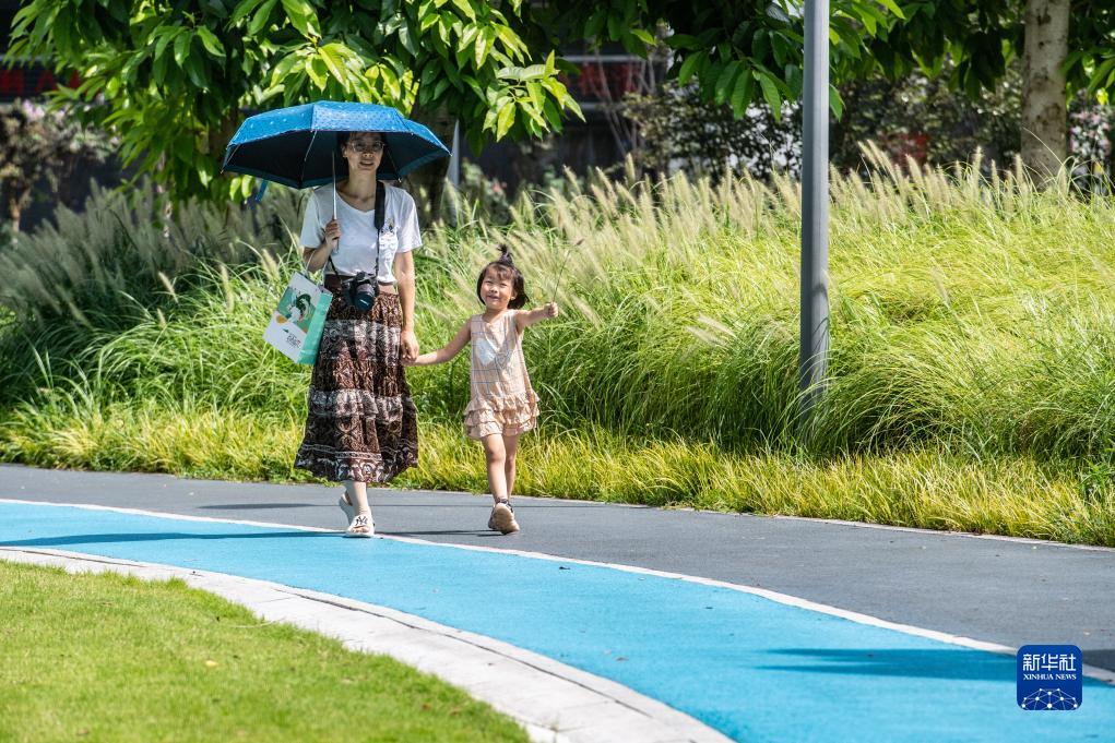 8月6日,在位于重慶長(cháng)江岸邊的珊瑚公園,市民在散步。