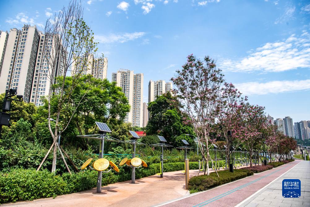 這是8月6日拍攝的位于重慶長(cháng)江岸邊的九龍灘公園一景。