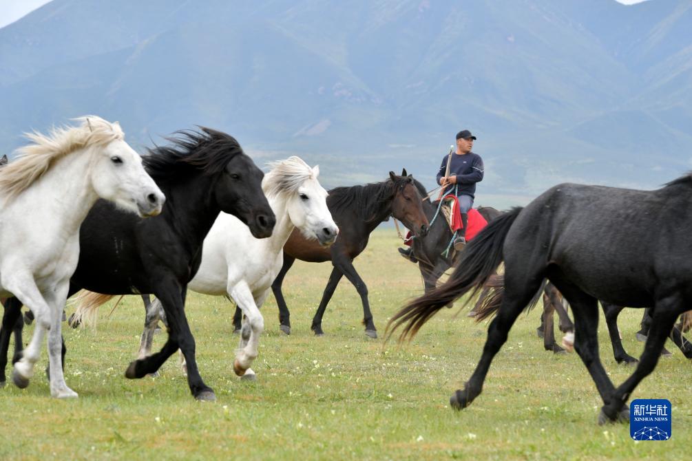 8月6日,在山丹馬場(chǎng)一場(chǎng)有限責任公司,牧馬人驅趕馬群。