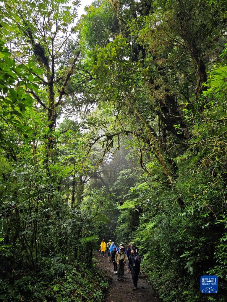 7月24日,一名導游帶領(lǐng)游客在哥斯達黎加蒙特韋德云霧森林生物保護區內游覽。