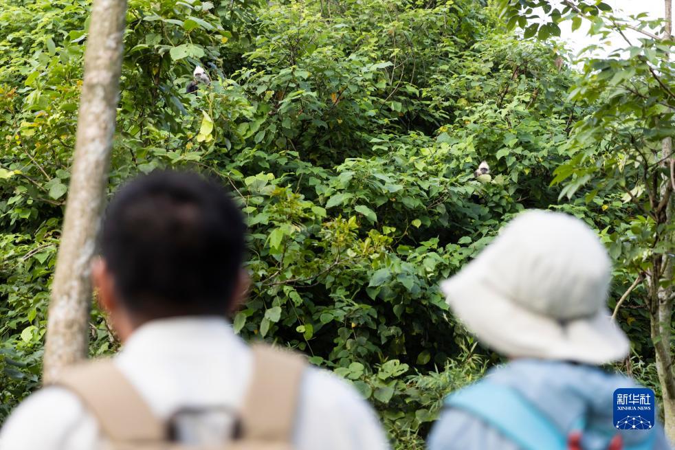 8月5日,李文欽(右)和梁志章在觀(guān)察白頭葉猴。