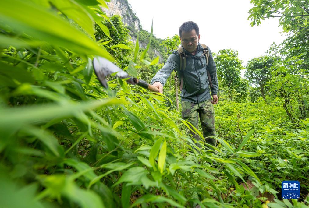 8月4日,梁志章在保護區巡視時(shí)用砍刀開(kāi)路。