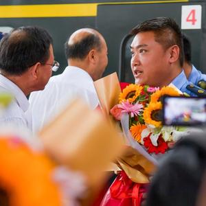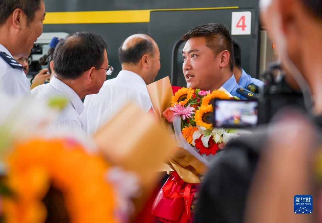 因強降雨滯留北京的Z180次列車(chē)乘務(wù)組于當日返回烏魯木齊,乘務(wù)人員的家屬、同事等前往烏魯木齊站迎接。