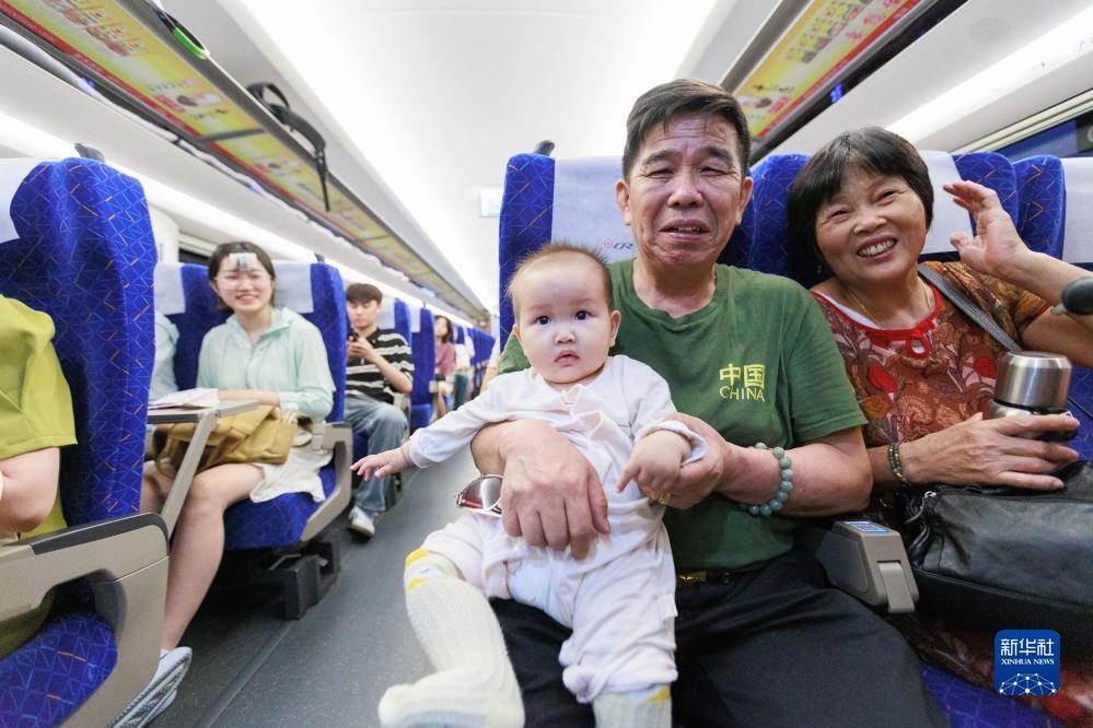 8月8日,人們乘坐首發(fā)列車(chē)D6171次出行。