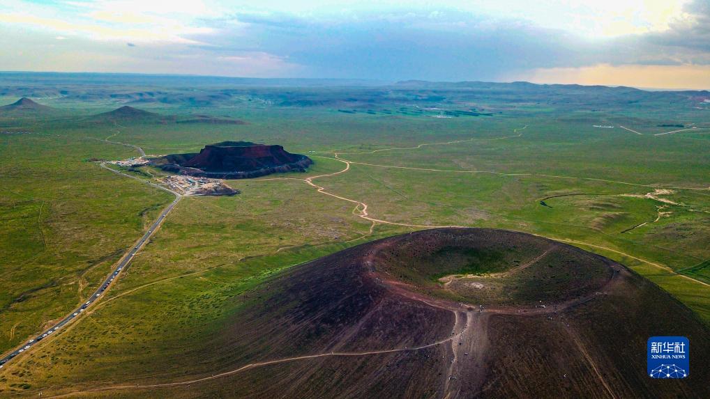 這是內蒙古烏蘭察布市察哈爾右翼后旗草原上的火山景觀(guān)(8月6日攝,無(wú)人機照片)。