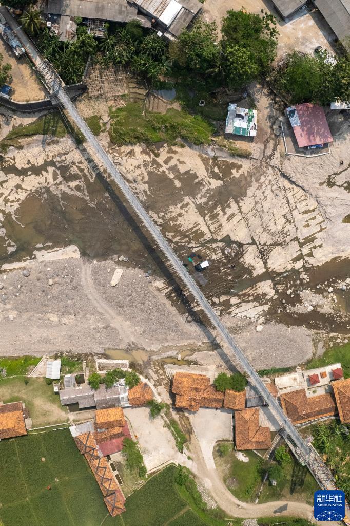 8月7日,在印度尼西亞西爪哇省的茂物,鄉間一條河流的水量大為減少幾近干涸(無(wú)人機照片)。